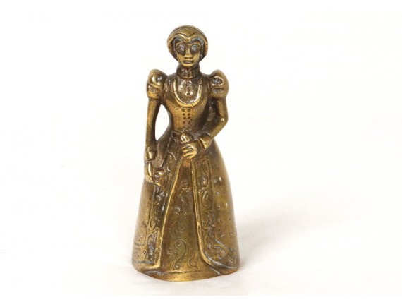 Very nice little table bell gilded bronze finely chiseled representing a woman of the Middle Ages, XIXth century.