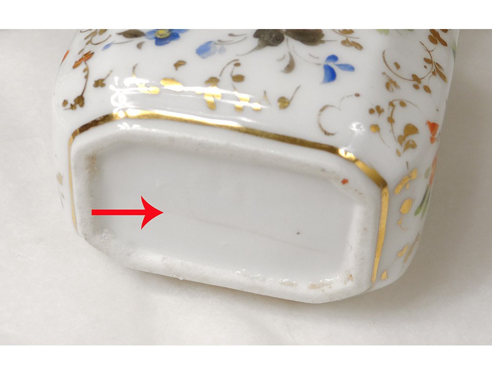 A note: hair in the milk jug, the handle of the jug was broken and repaired, wear to gilding and decoration in places slot on top of the cabinet, in a tiny shift back angle (see last photo) some small accidents and wear time on the case, see photos.