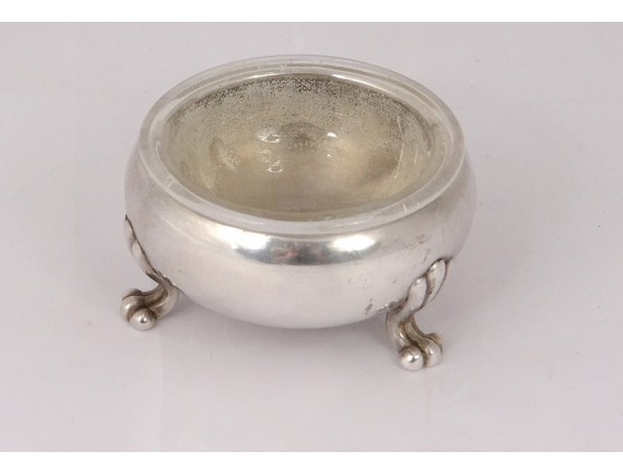 Salière Russian silver tripod shape on claw feet, punch St. Petersburg, XIXth century.