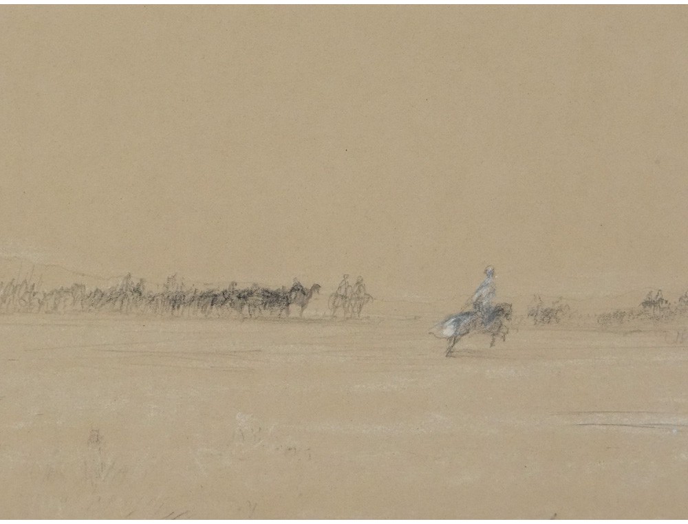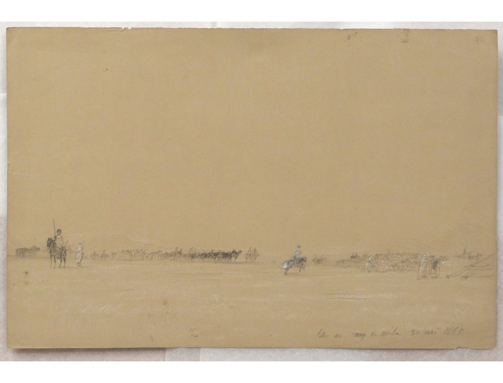 Very nice design Théodore Gudin * representing African Tuareg horsemen in the desert camp Mila?, Algeria, May 30, 1865, XIXth century.