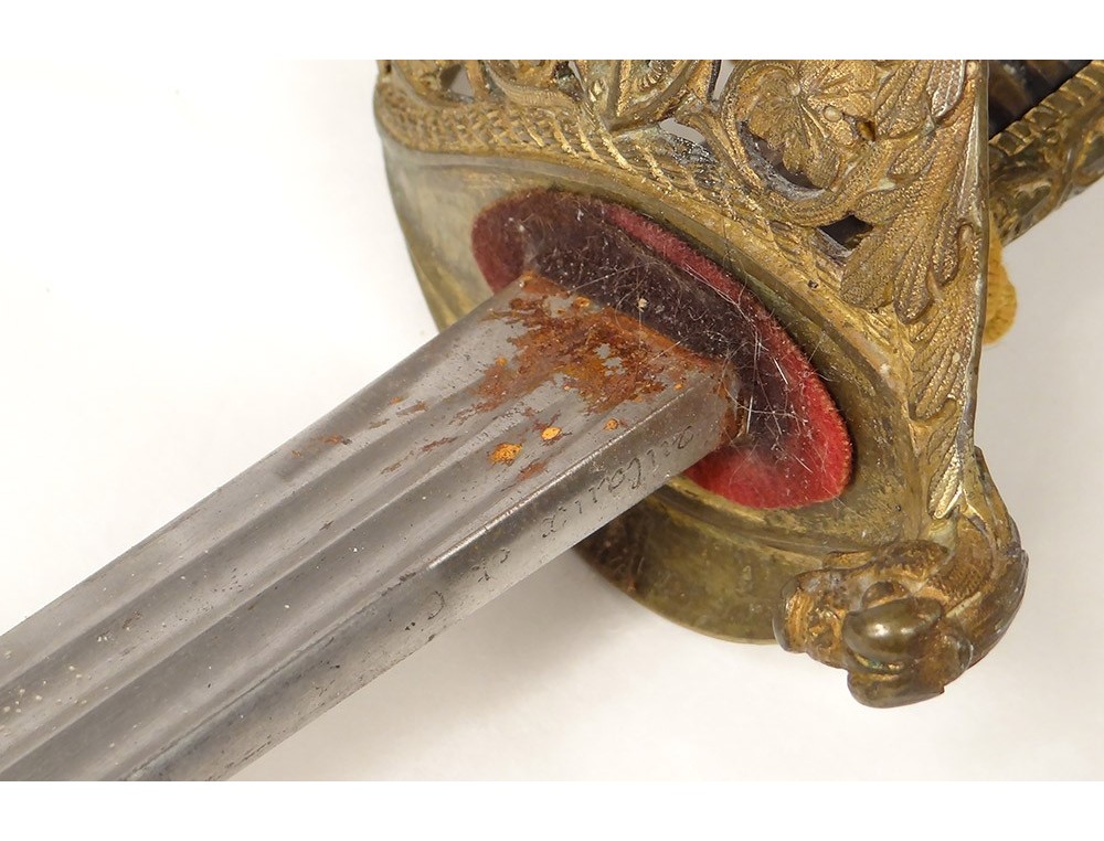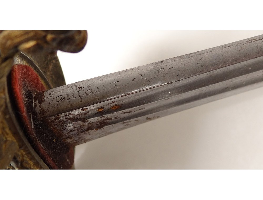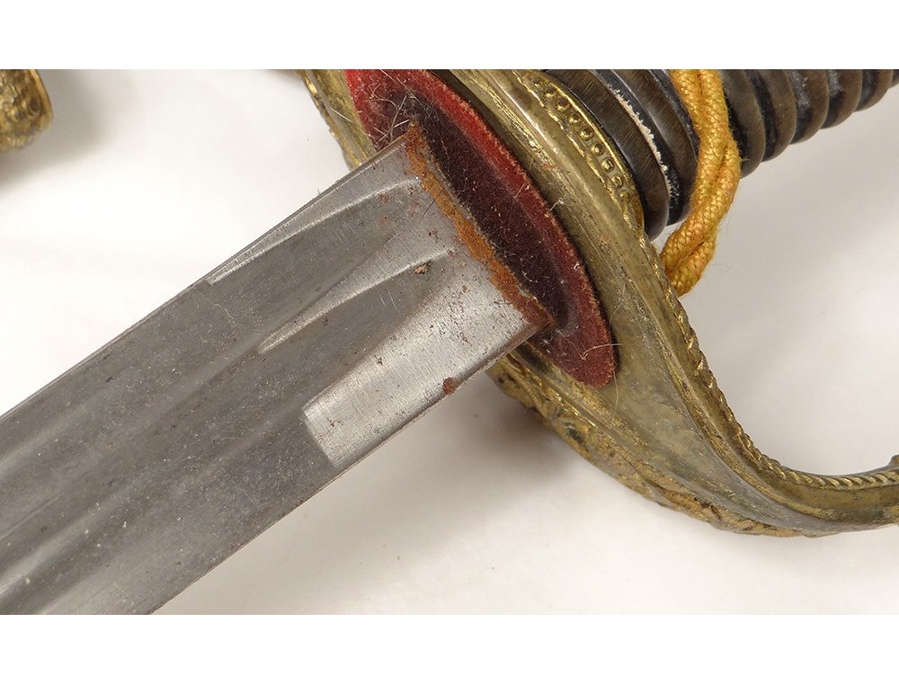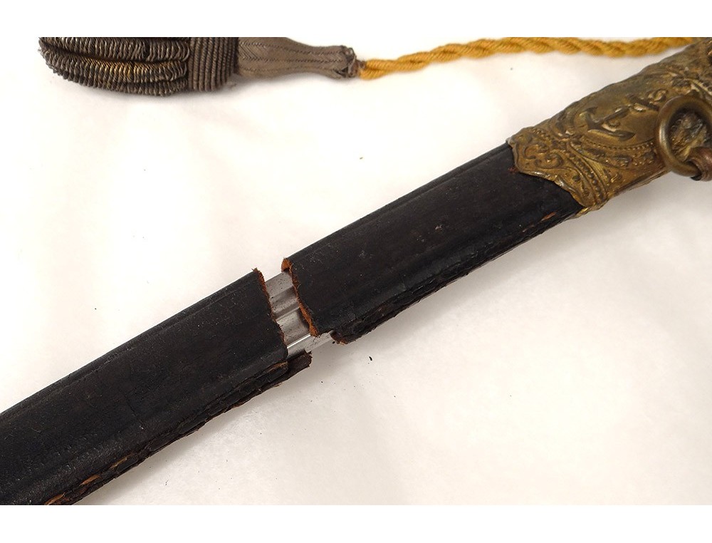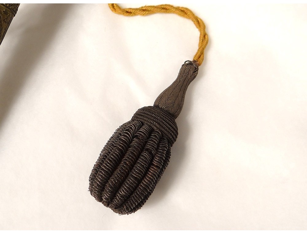 This sword is in good condition, it is in its own juice. He has his strap with pompom. The sleeve opens in two (without brass trim). The signature of the blade is worn.