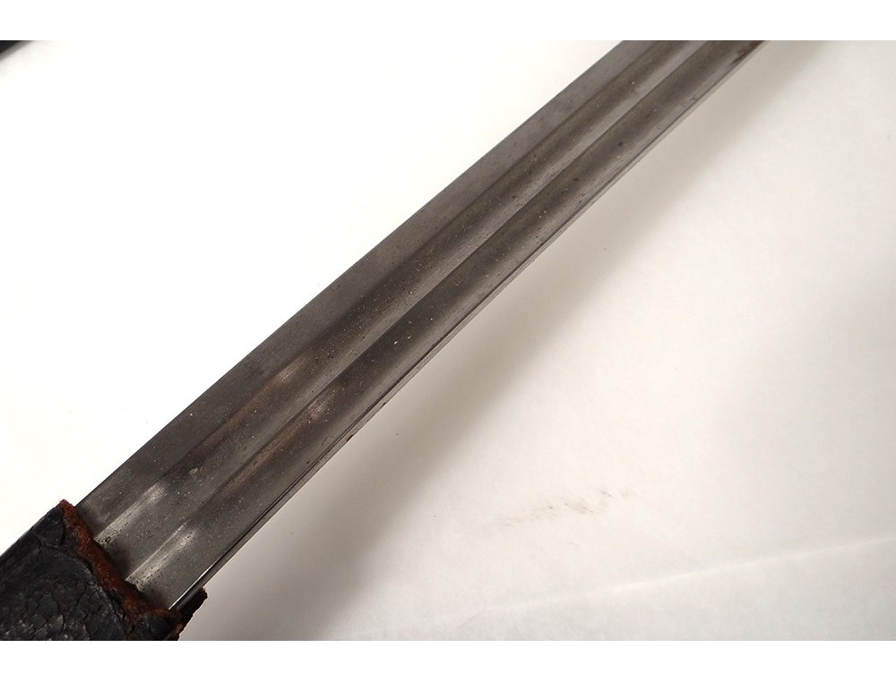 A note: blade slightly stung in places (especially at the level of the guard), cracks and wear of time on the leather of the sheath, wear time, look at the photos.