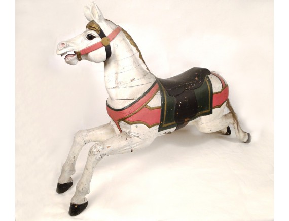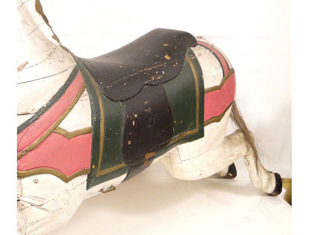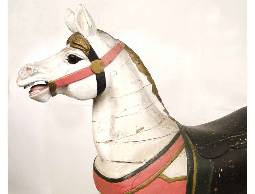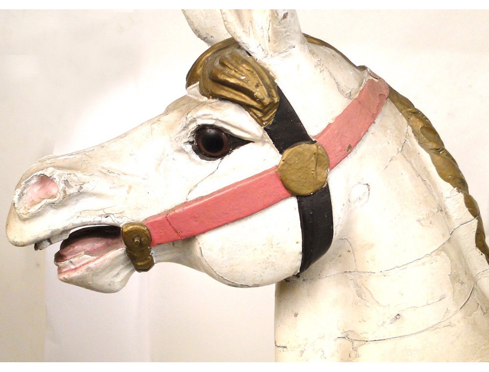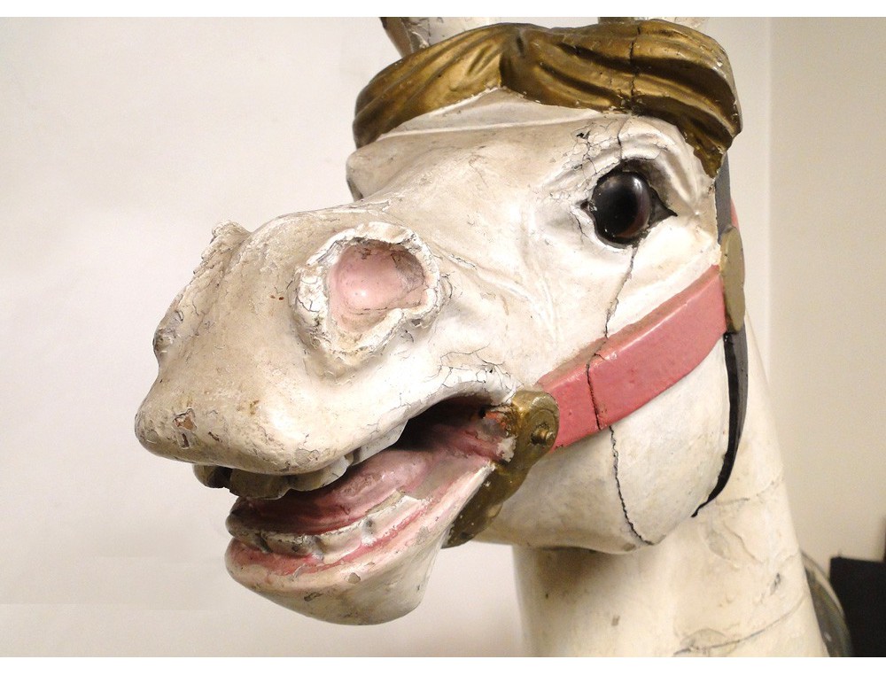 Rare carousel horse carved wooden polychrome eyes sulfide, XIXth century.