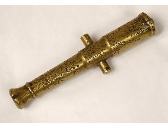 Small barrel barrel from the south *, originally mounted on a sundial, in chiseled bronze with floral and plant motifs, from the 18th century.