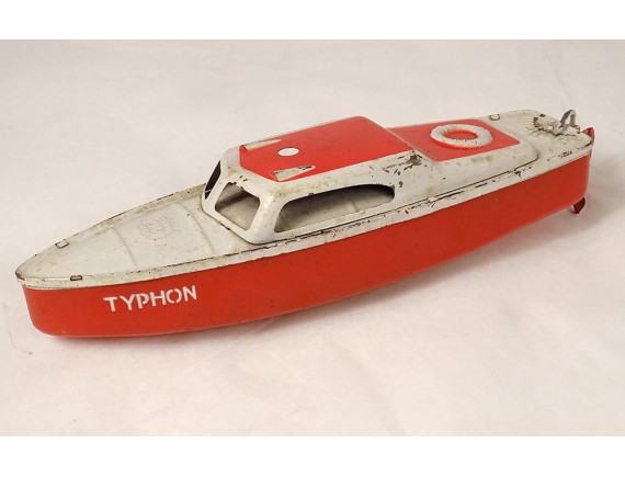 Boat (basin dinghy) of the brand JEP Unis France, Typhon model (red and white), key system, vintage twentieth century.