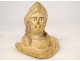 Clay pipe representing the bust of the Chevalier Bayard * with his helmet, below the attributes of the knight (ax, sword ... etc), signed JB for Gambier **, vintage late nineteenth and early twentieth centuries.