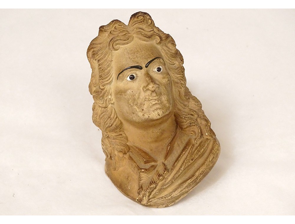 Clay pipe representing the bust of Nicolas Boileau *, French man of letters of the Age of Enlightenment, signed JB for Gambier **, vintage late 19th-early 20th centuries.