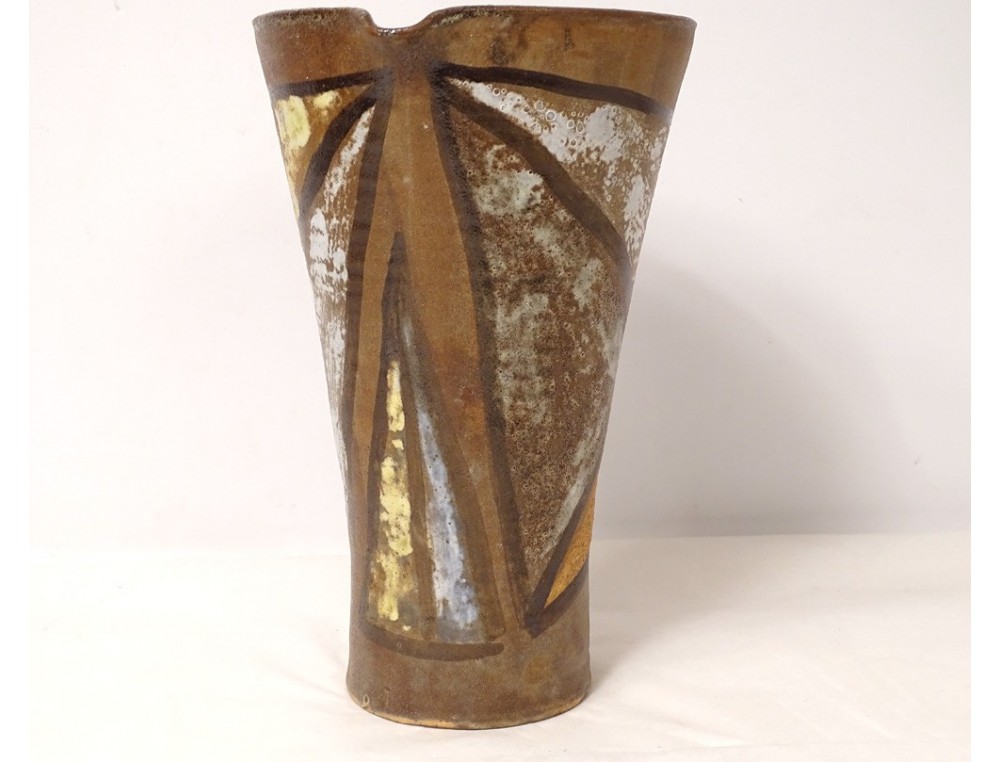 Alexandre Kostanda founded his own workshop in 1953. He brought sandstone clay from Cluny, which withstands higher firing temperatures, and mixed it with the earth of Vallauris. He was one of the ceramists who organized the International Ceramic Biennial of Vallauris in 1968. Its production, sensual and plastic at its beginnings, evolves towards a more refined ceramic, with floral or abstract motifs. In Vallauris, despite the shimmering colors of the local ceramics, Alexandre Kostanda maintains a predilection for muted colors, close to the natural shades of clay. Its ceramic, rustic in appearance, surprises with the finesse of its workmanship and the balance of its proportions, revealing Kostanda's exceptional technical mastery.