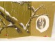 Small painted evening photo screen representing two herons in a snowy landscape of tree branches, as well as a small bird sitting on a flowering branch, another (a goose flying over reeds, with 6 photo slots, from the late 19th-early 20th century.
