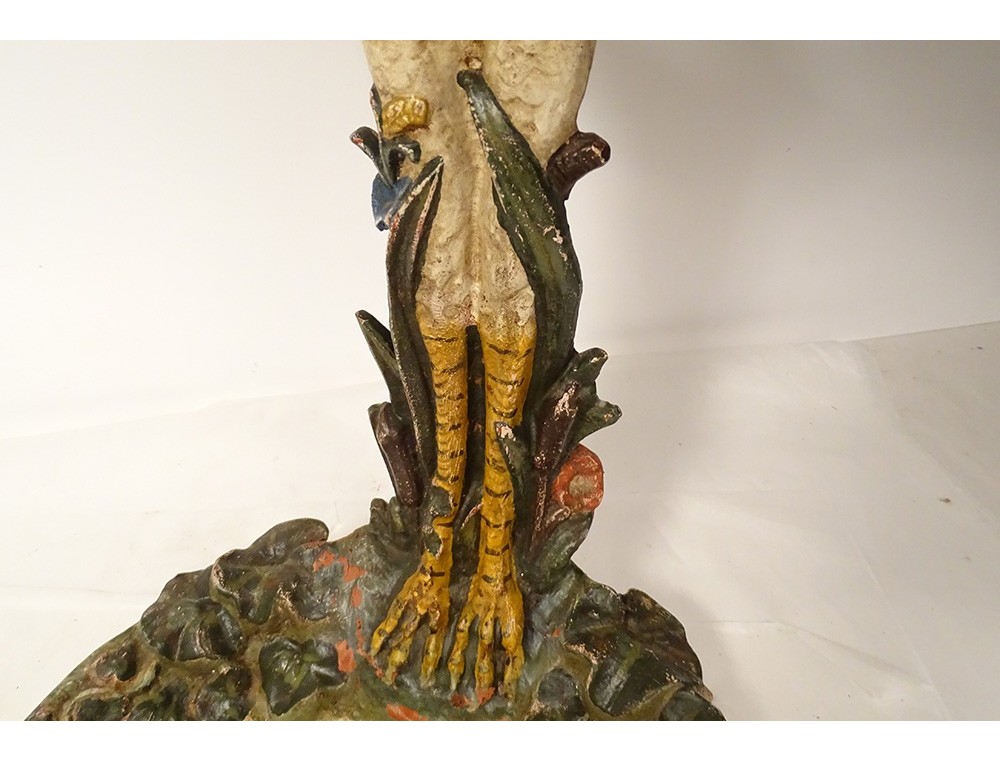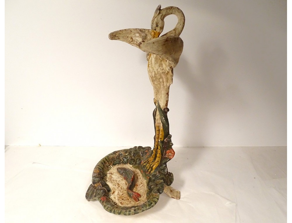 Polychrome cast iron umbrella stand with heron and fish motif, Art Nouveau, 19th century