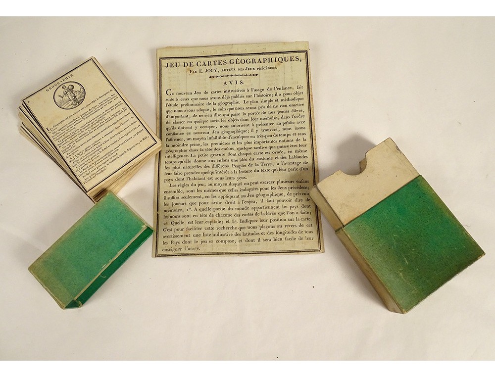 Game of "Geographic Maps" by Etienne de Jouy* including 48 cards and the location of the places on the gobe, vintage early 19th century.