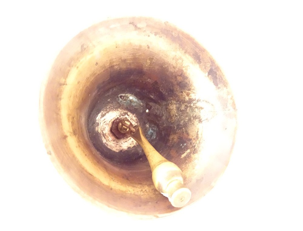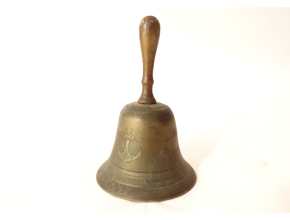 Small nautical captain's bell in finely chiseled bronze with a marine anchor and a cartouche, from the 19th century.