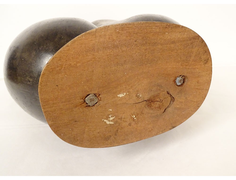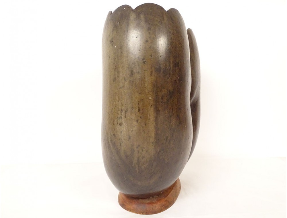 This sculpture is in good condition. The coconut butt was carved in the upper part. It is the largest seed in the world, that of the sea coconut (also called coco de mer or double coconut).
