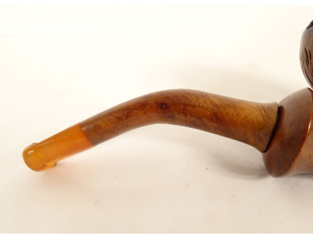 Meerschaum pipe with orientalist Zouave/Sultan head, amber, Guyot collection, 20th century