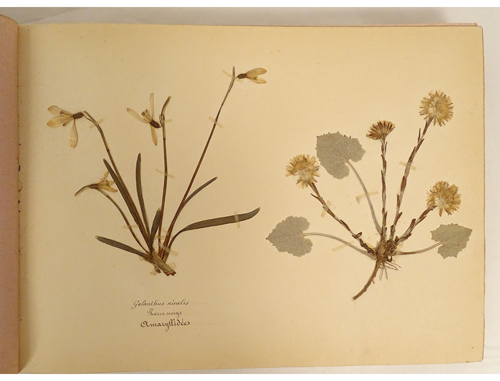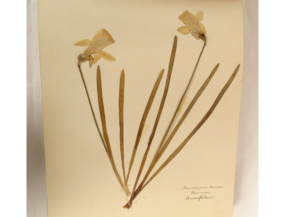 Antique herbarium of plants, flowers, daffodils, cruciferous plants, and hyacinths (20th century)