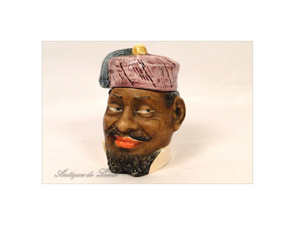 Tobacco jar slip, representing the head of a character orientalist of XIXth century.
