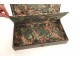 Superb inkstand trip to golden green Moroccan leather with iron, decorated with palm leaves friezes, signed Susse * stationer Paris, First Empire period early nineteenth century.