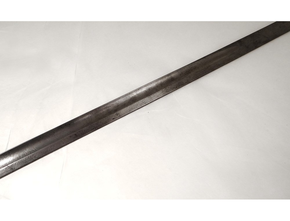 Sabre officer, stingray handle, finely engraved bronze, decorated with a crowned monogram and stylized plant motifs, signed blade lozenge "Proved" with a star, XIXth century.