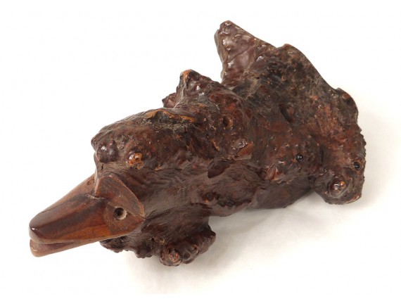 Carved briar pipe head decorated with several heads of fantastic animals (birds ...), working Popular Art XIXth century.