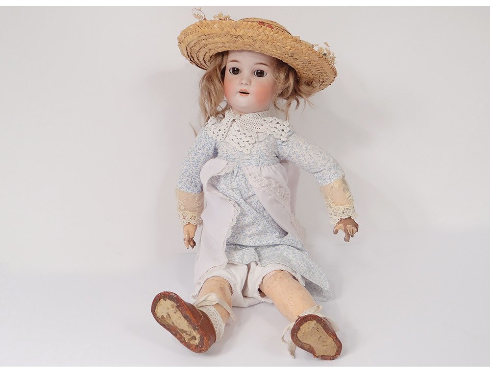 & Halbig doll Simon signed "Simon & Halbig 1078 Germany S & H 9", bisque head, brown sleep eyes, mouth ajar to enhanced red lips, composite body with clothes, vintage early twentieth century.