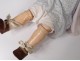 A note: accidents and miss on the arms and hands (see red arrows), tiny slot on the back of the left thigh, wear time, the clothes are a bit yellowed, see photos.