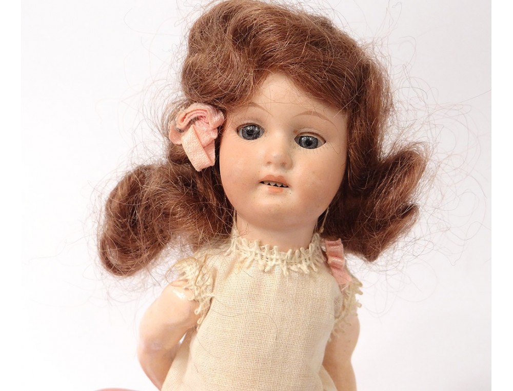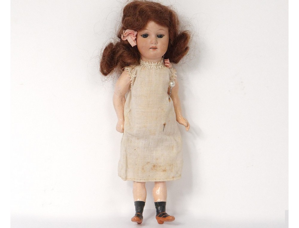 Mignonette small doll signed Armand Marseille 390 called Walker (head spinning with legs), bisque head, sleeping eyes, open mouth revealing his teeth, body e composite vintage early twentieth century.