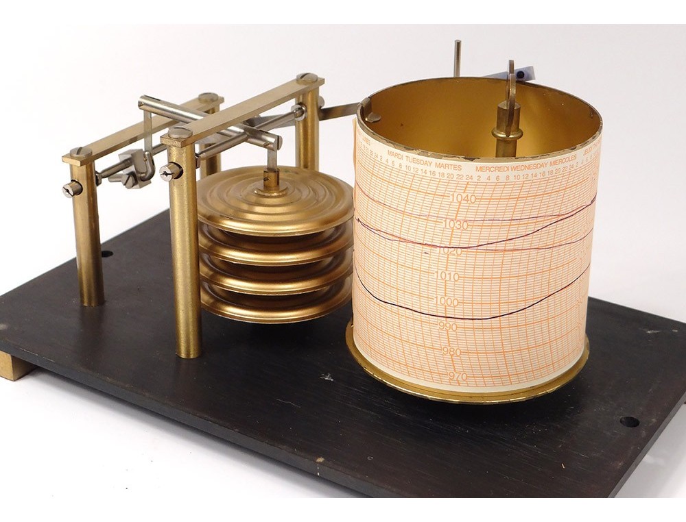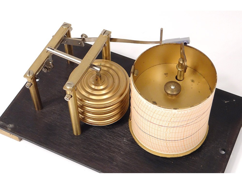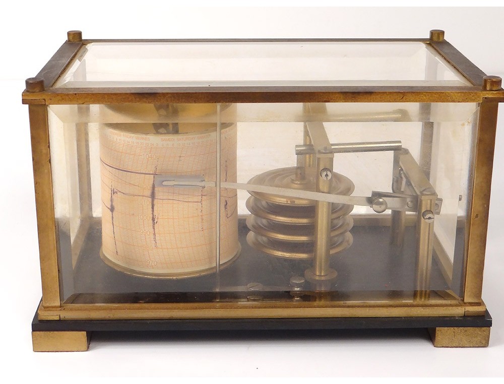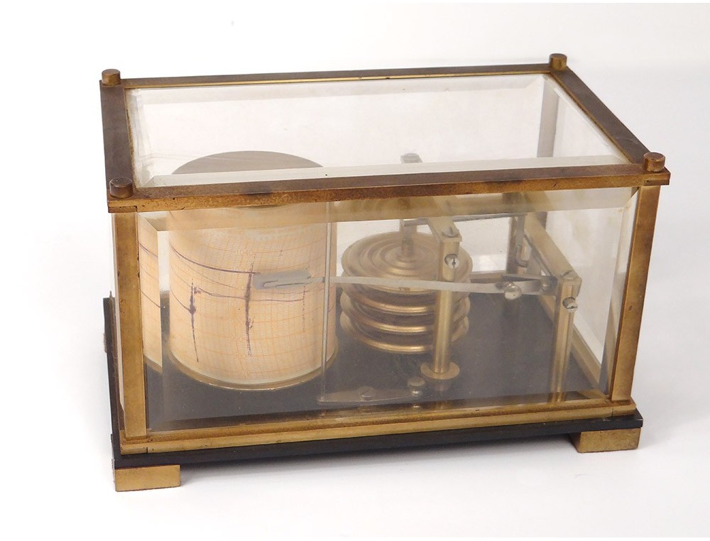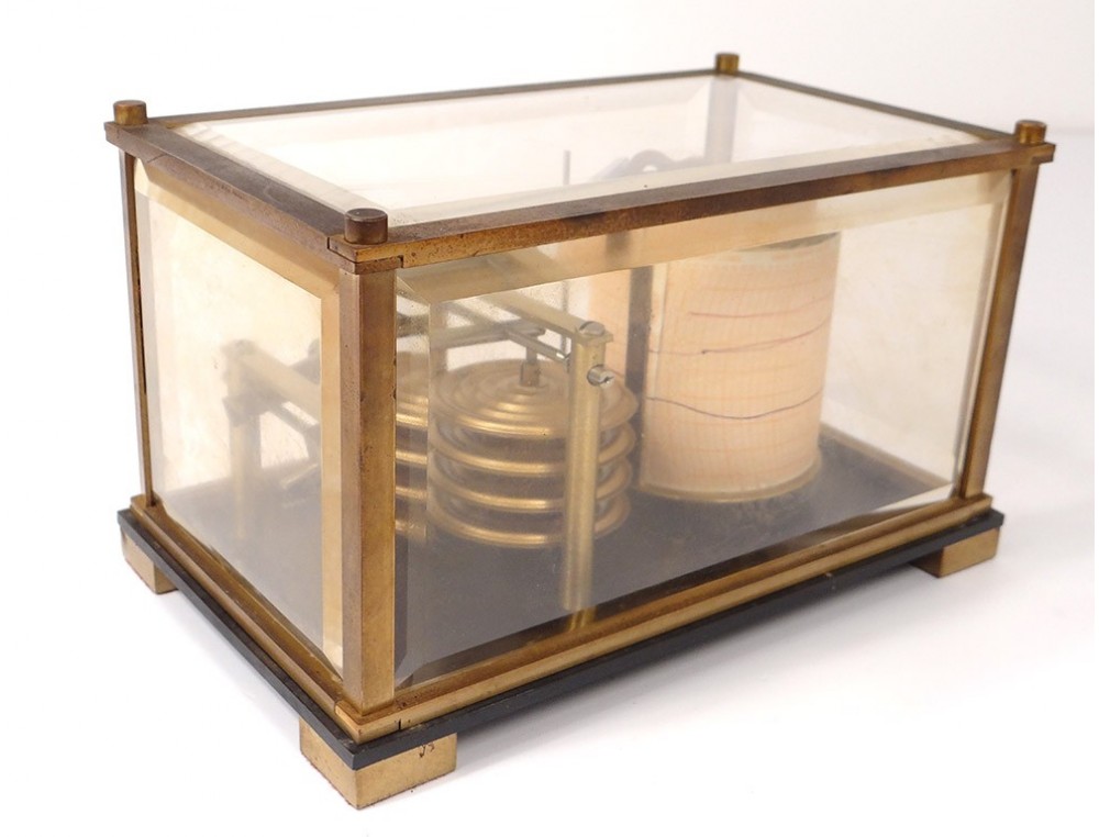 Barograph or barometer recorder signed Naudet * in Paris, in gilt brass and beveled glasses, mecanism with 4 capsules of Vigie, of early twentieth century.