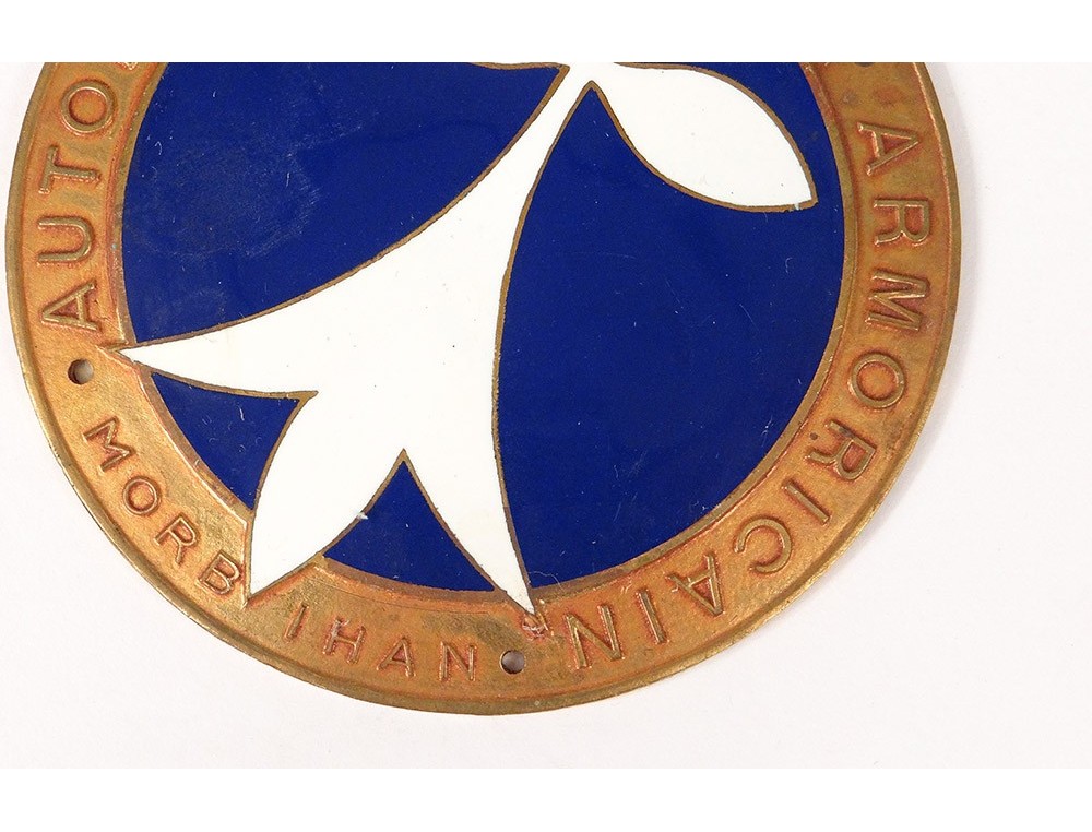 Plaque or badge of grille enamelled metal decorated with a fleur de lys, "Automobile Club Armoricain - Morbihan", from the 20th century.