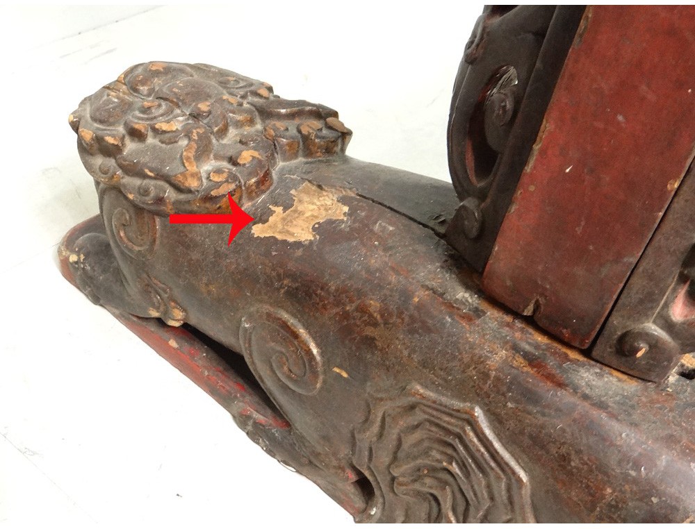 A note: some accidents on the feet, it moves slightly once nested in the base (perhaps reinforce), some cracks, worm holes, lack of paint in places, wear time, although looking at the photos.