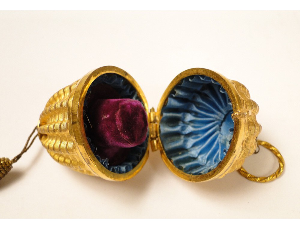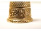 Thimble hallmarked solid 18 carat gold eagle's head, decorated with fine vegetable stylized frieze, in its metal case golden era of the nineteenth century.