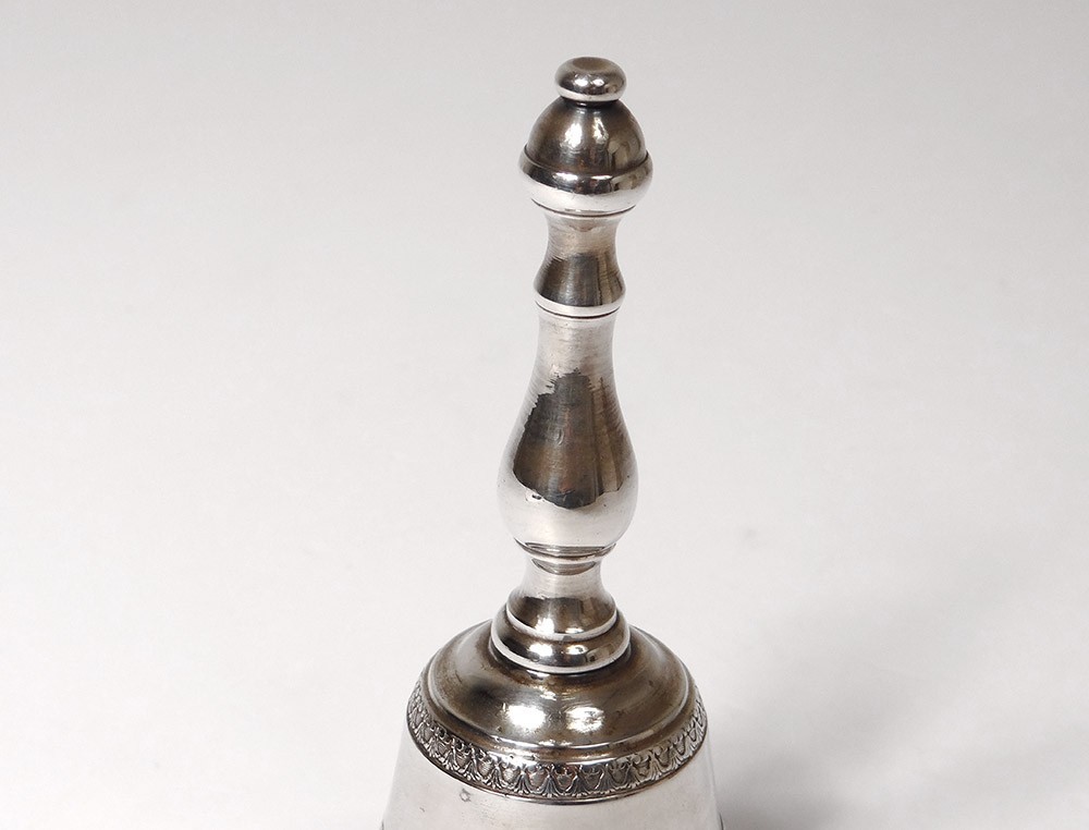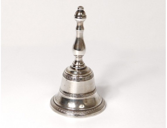 Silver bronze bell, chiseled with friezes of oves, foliage and small flowers, XIXth century.