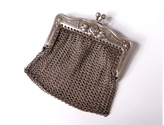 Small purse or purse in sterling silver finely chiseled with stylized foliage decoration, punched wild boar head, XIXth century.
