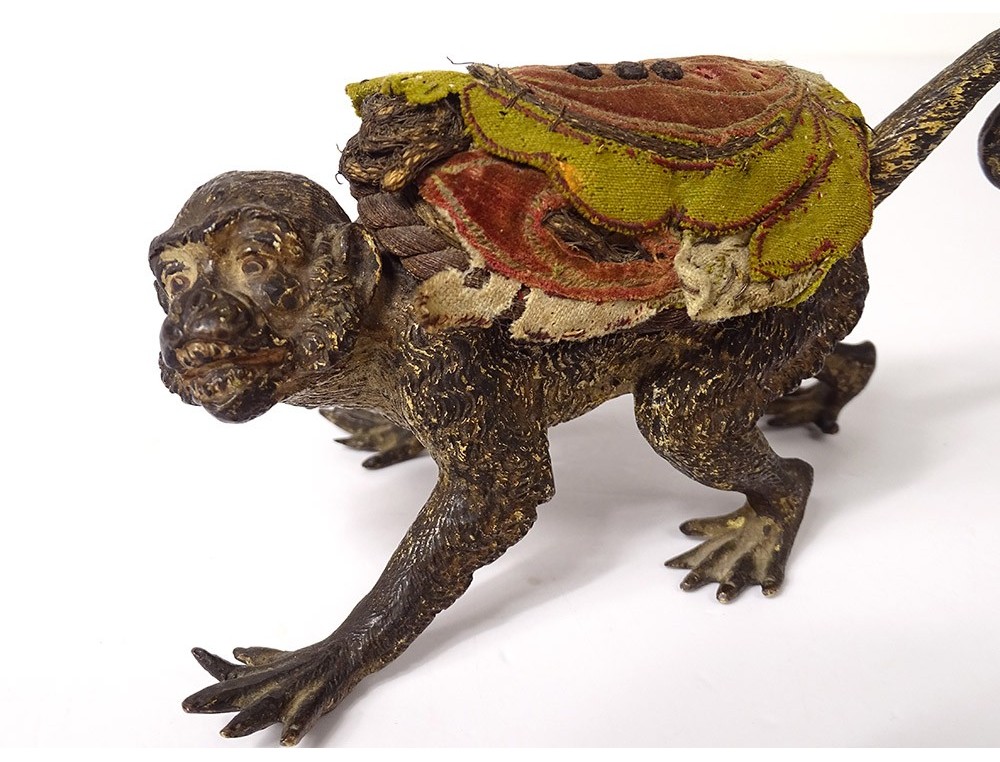 Sculpture in Vienna bronze * polychrome and gilded forming needle holder representing a monkey moving on all fours, from the XIXth century.