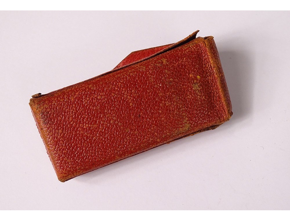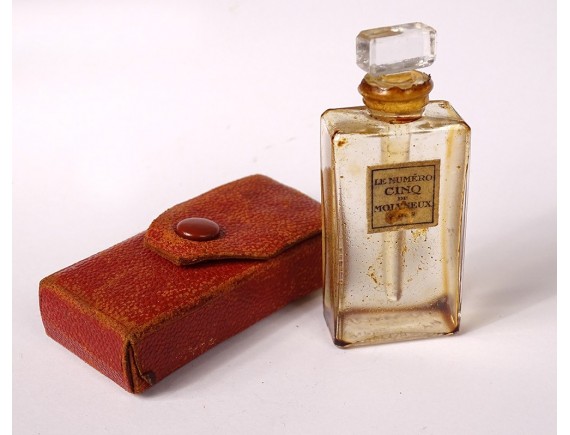 Small miniature perfume bottle (sample) of the brand Molyneux * Paris, Number Five, in its original red leather case, vintage circa 1950 twentieth century.