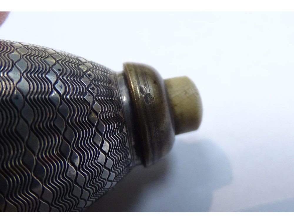 Small doorbell switch in foreign solid silver finely chiseled and guilloché (import stamp with swan) decorated with geometric patterns, XIXth century.