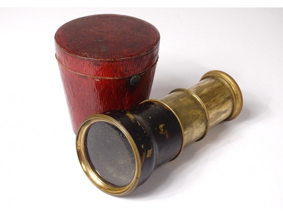 Binoculars or opera glasses in gilded and painted brass, in their original leather case, from the Napoleon III period of the 19th century.