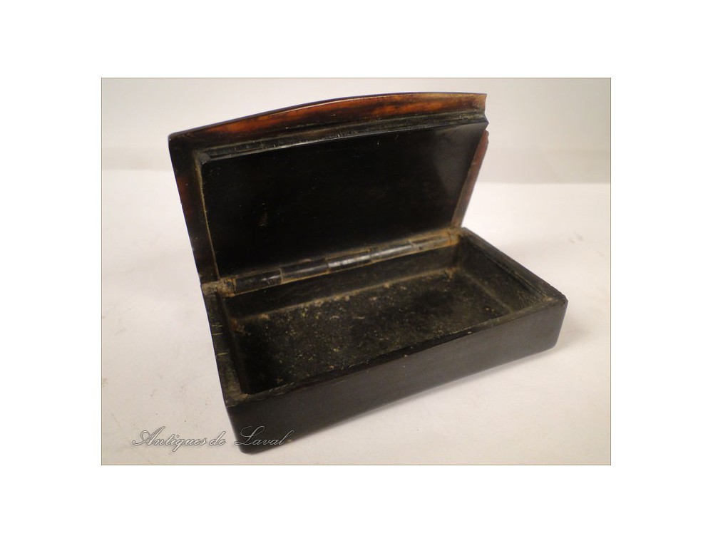 Superb and rare horn snuffbox (beef), carved facade of a religious scene marked St. Agnes, Empire period early nineteenth century.