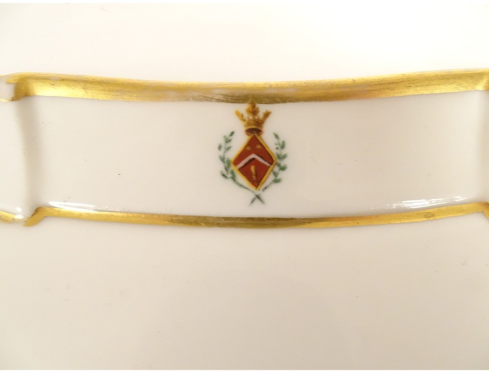 Presentation tray porcelain service Paris coat of arms blazon flower 19th century