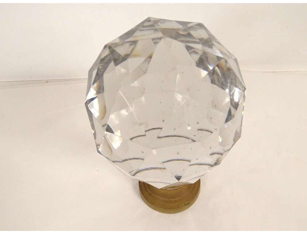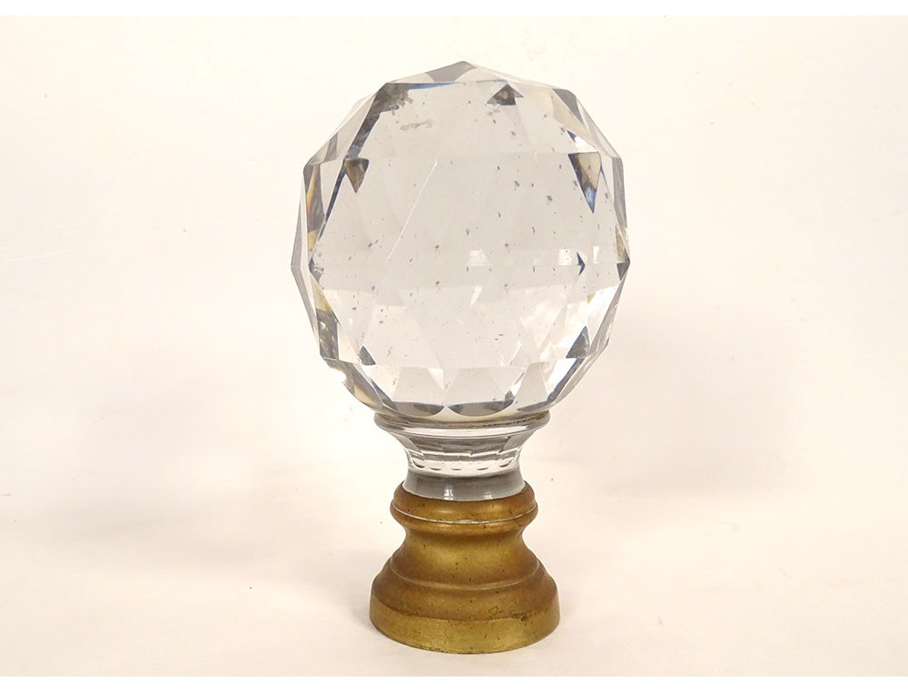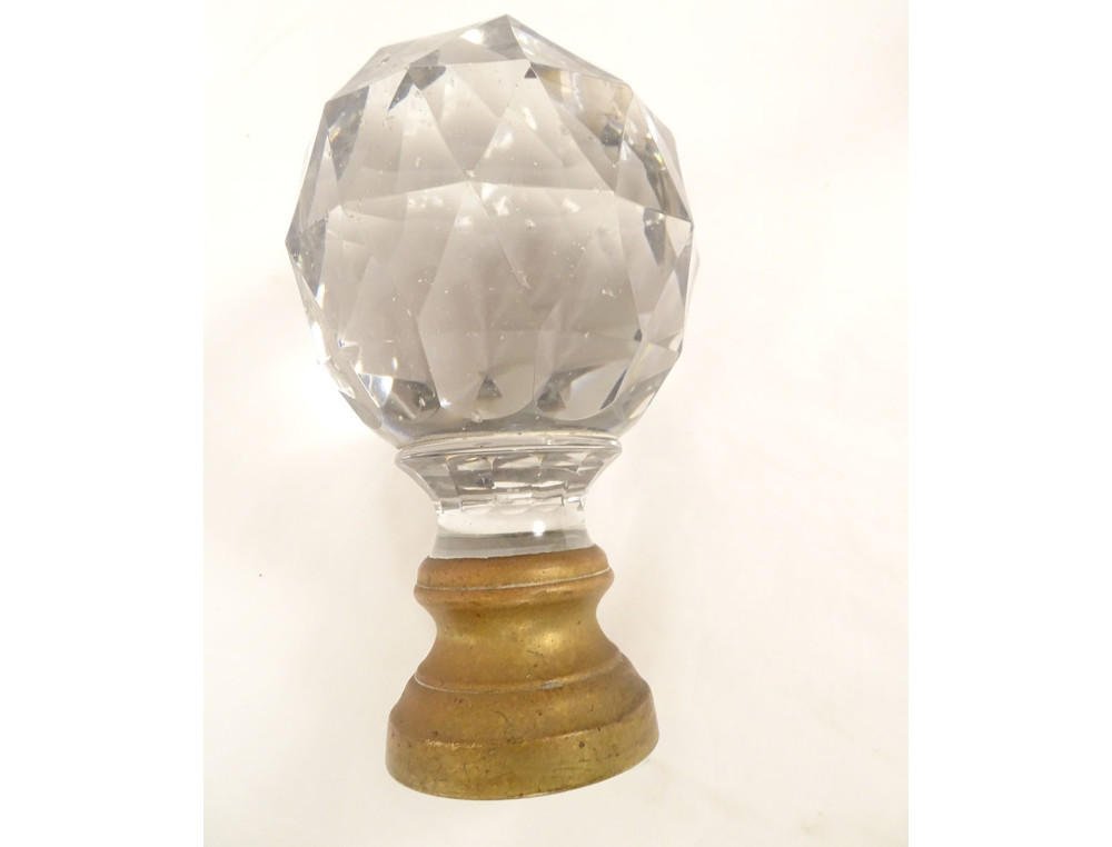 Staircase ball in cut crystal, most likely from Baccarat, with faceted decoration, gilt bronze mount, 19th century.