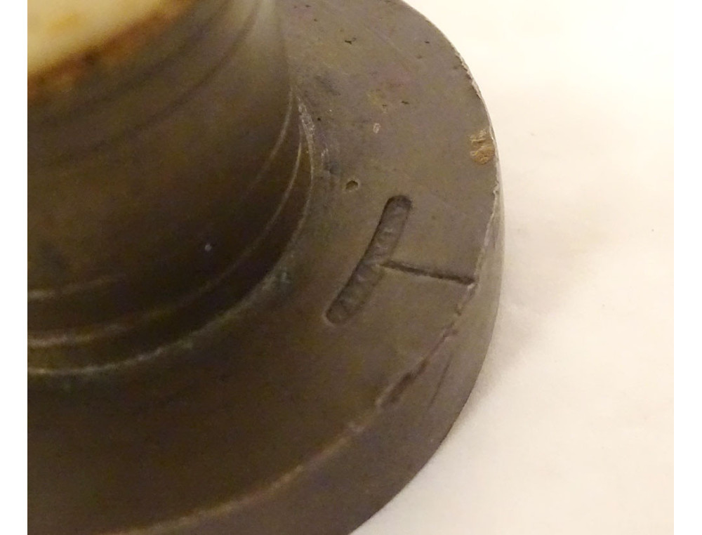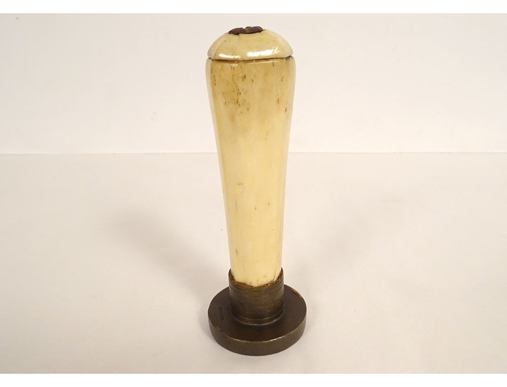 Bronze consular seal or stamp with the inscription "Vice consolato SM Sarda in Cannes" = Vice consulate of Sardinia in Cannes, surrounding the coat of arms of the kings of Sardinia, carved bone handle, 19th century period.