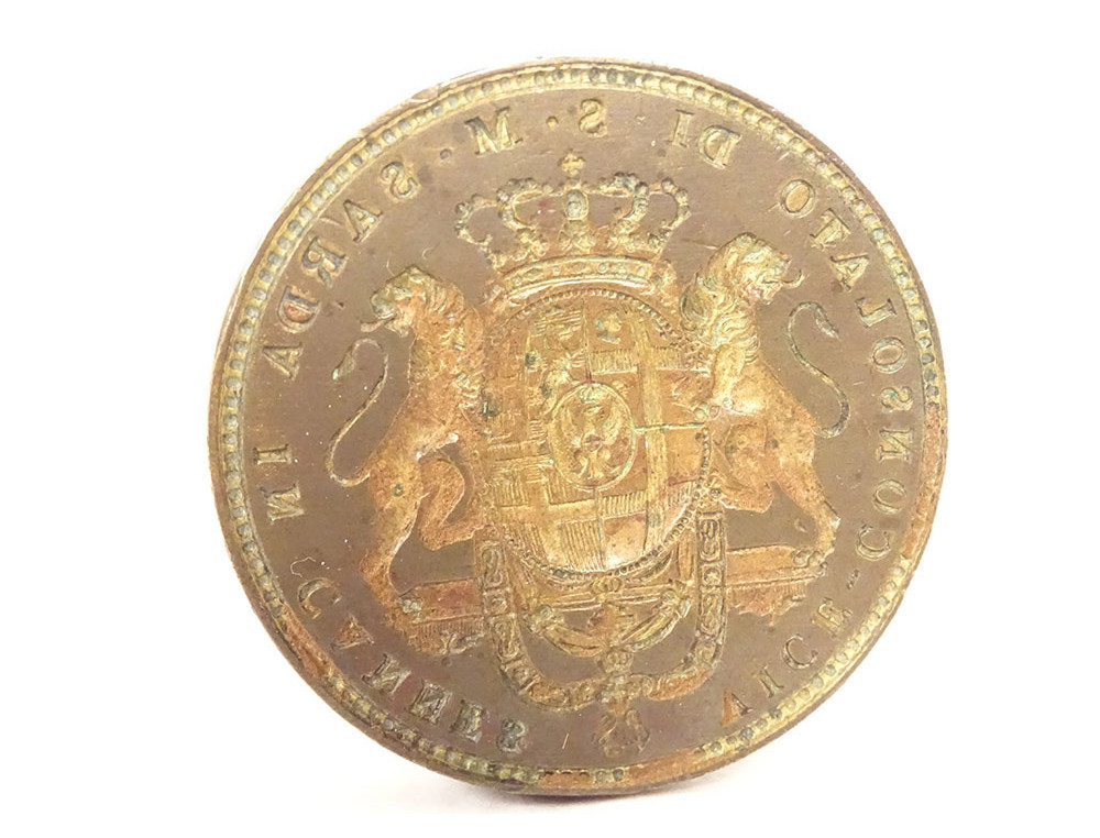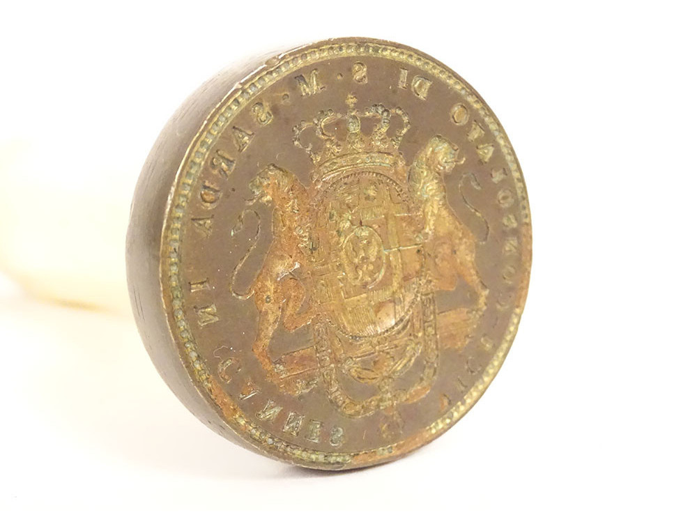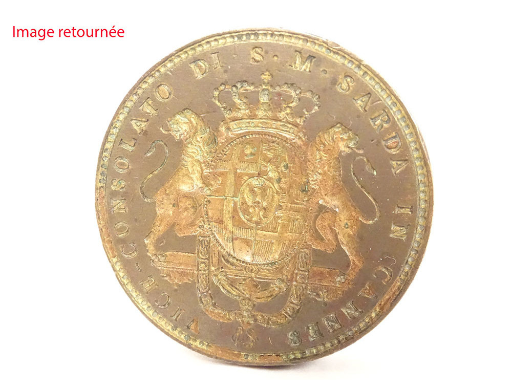 Seal of the Vice-Consulate of Sardinia, Cannes, Italy, bronze coat of arms, 19th century