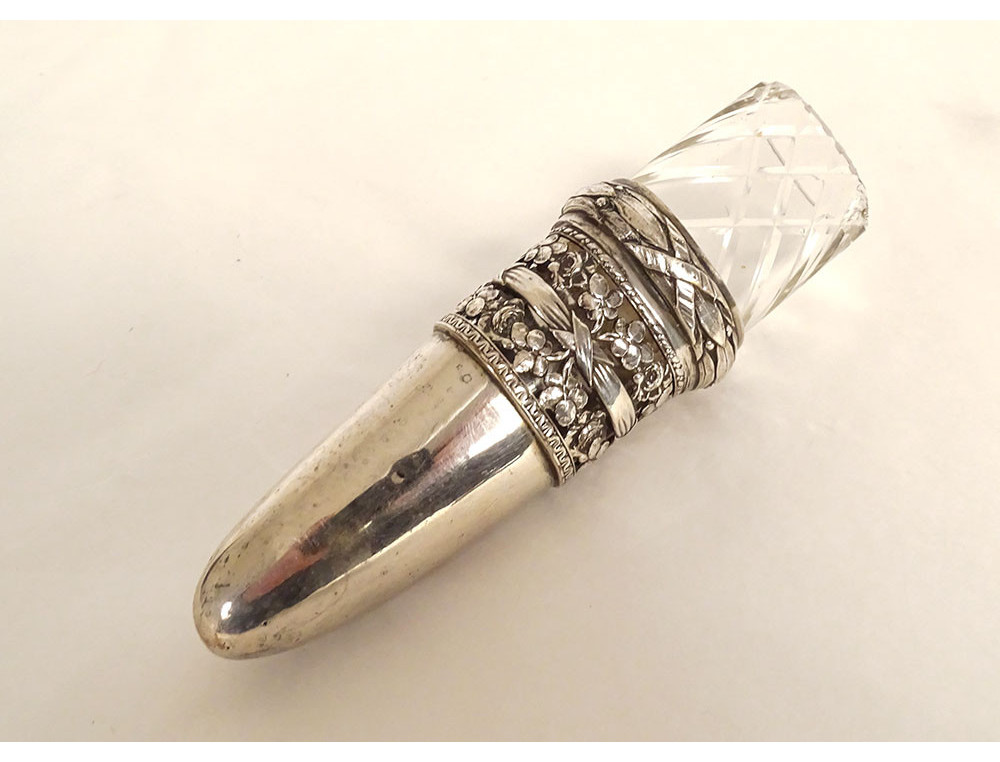 Car flower frog, soliflore flower holder, cut crystal, metal, 19th century