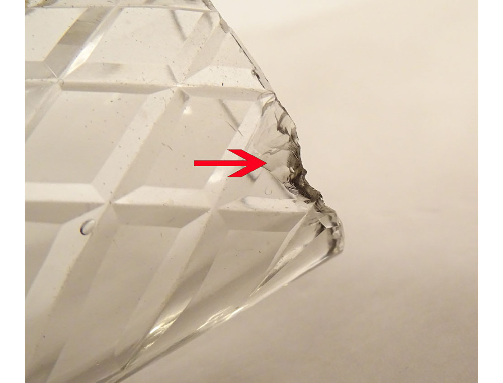 Car flower frog or soliflore flower holder in cut crystal with geometric lines (probably Saint-Louis or Baccarat), metal mount, from the late 19th-early 20th centuries.