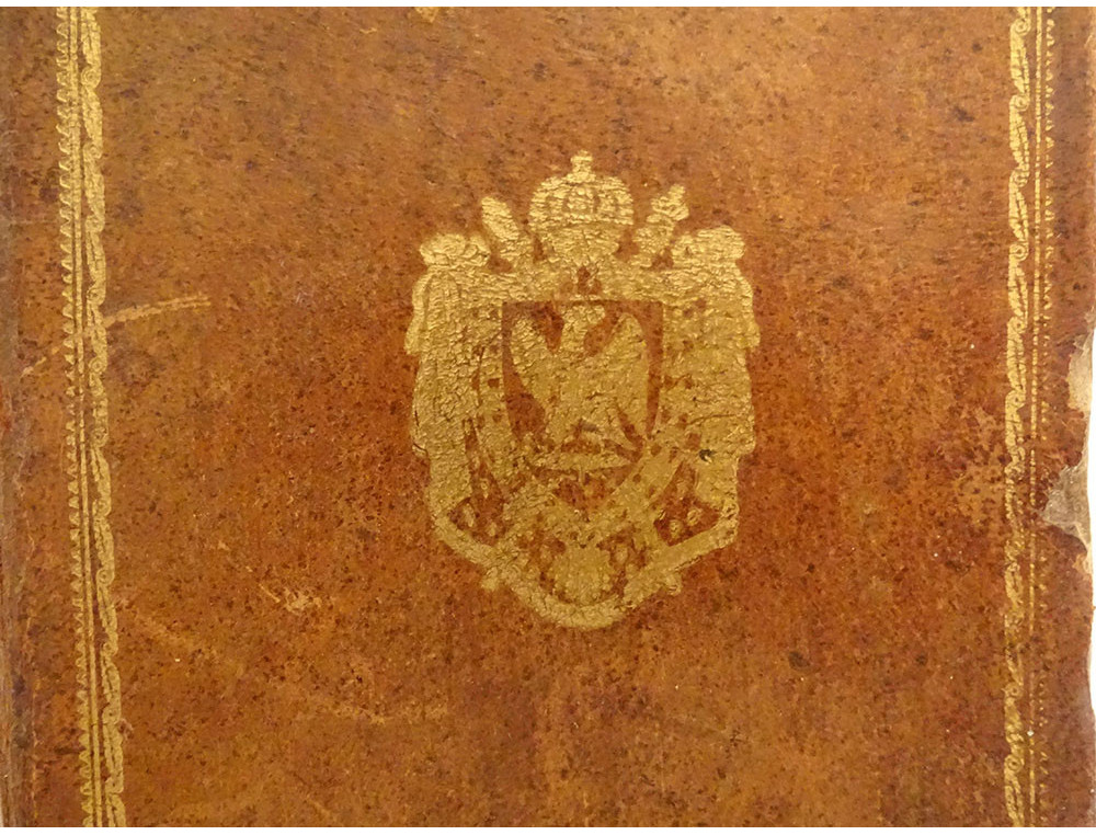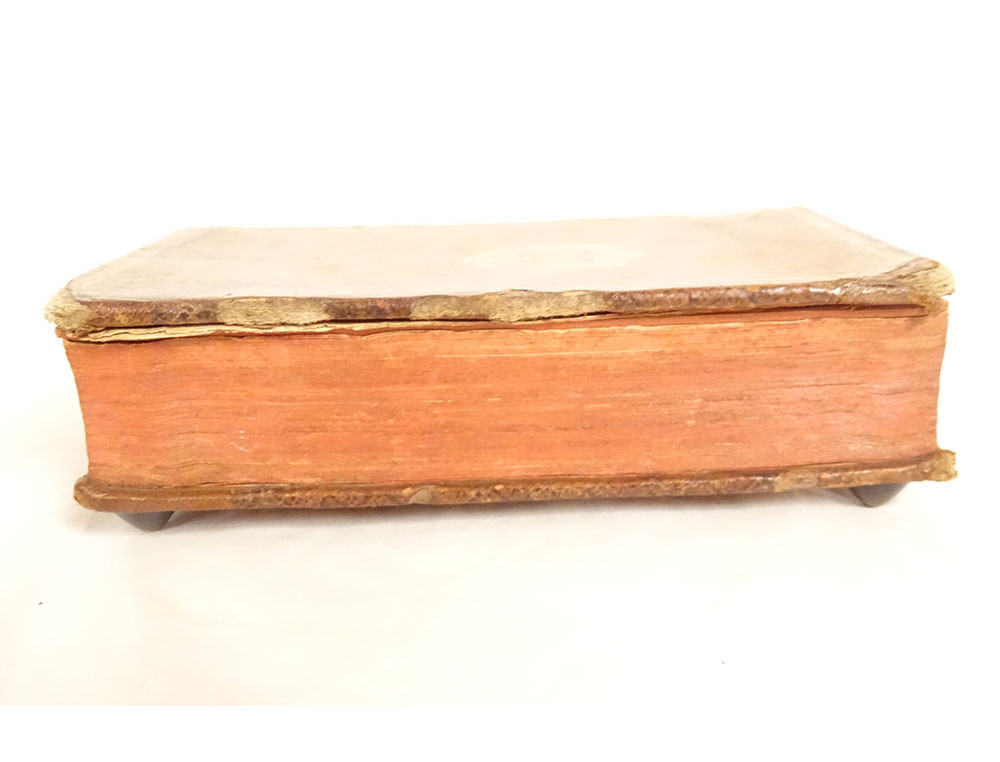 Please note: the paper is yellowed and pitted in places, there are some accidents, scratches and wear on the leather, see photos.
