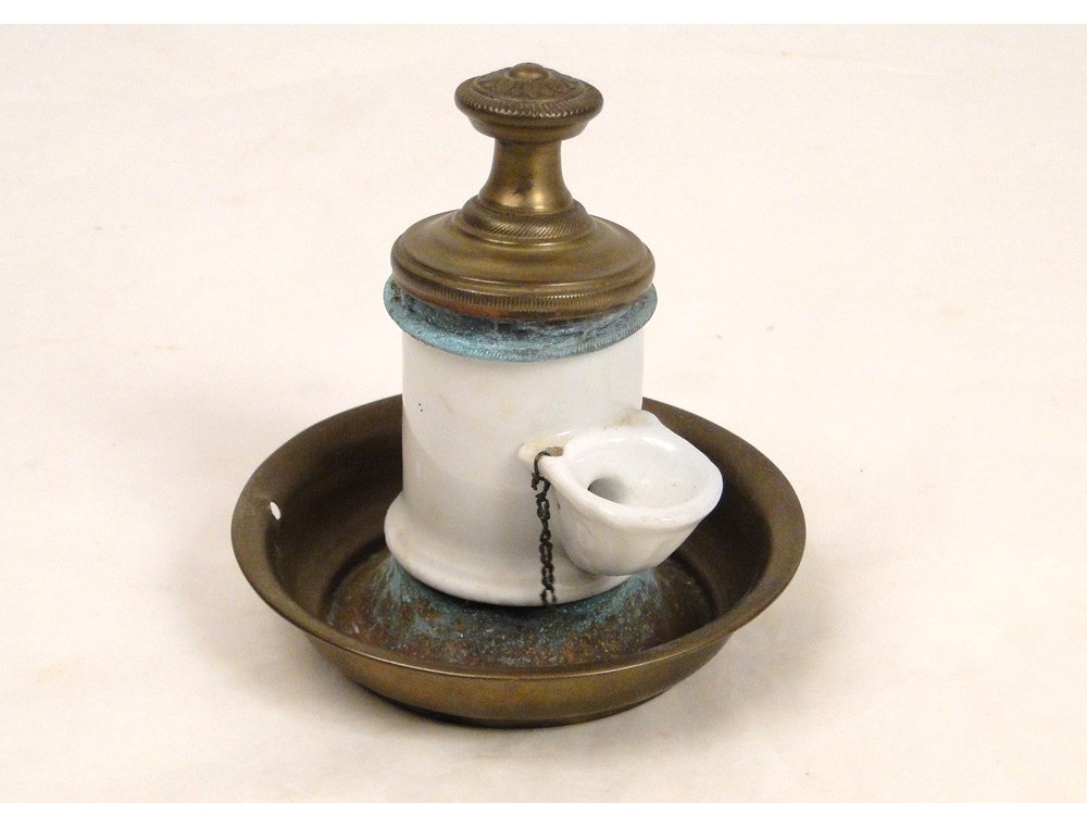 Ink pump, white porcelain and gilt brass, antique Napoleon III nineteenth century.