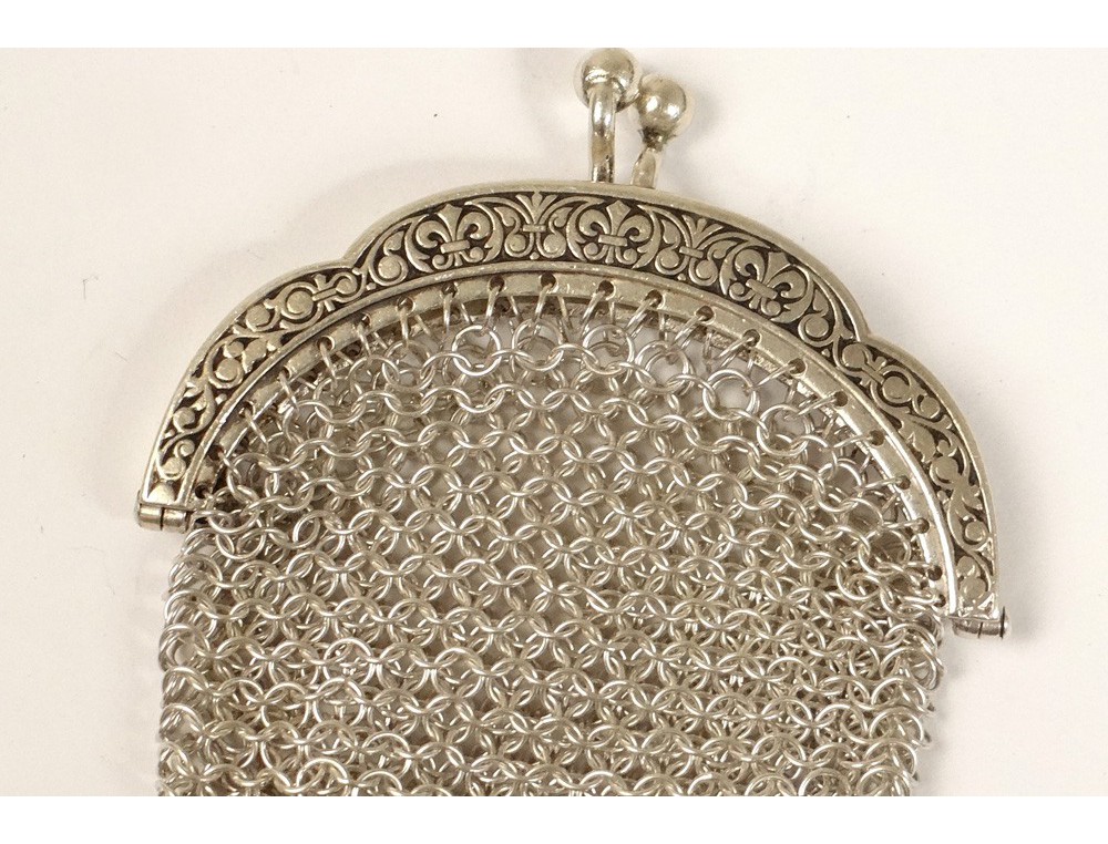 Very nice little purse in silver finely carved, decorated with small lilies and foliage, stamped boar's head of XIXth century.