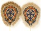 Pair of screens or fans for beading decoration and son representing small flowers surrounded by stylized plant motifs, bone handle (beef) carved Napoleon III nineteenth century.