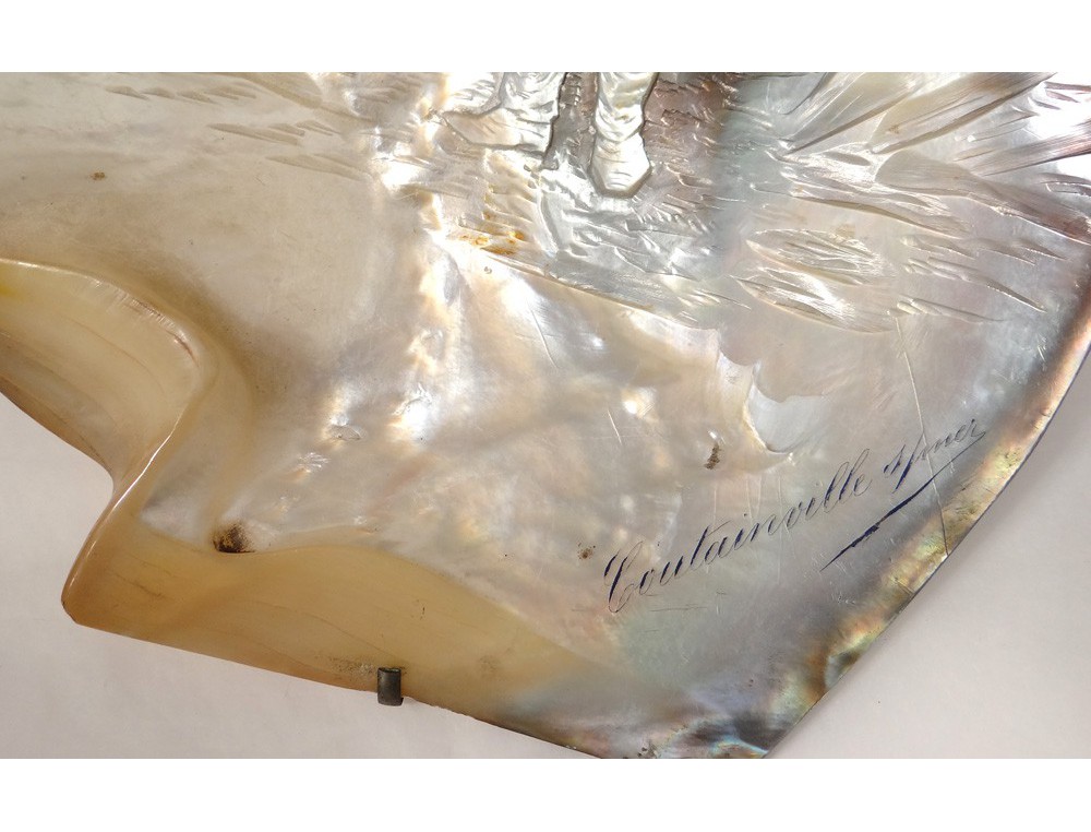 Grand shell pearl representing a fisherman carrying his net on the beach in Coutainville sur Mer (Normandy), XIXth century.