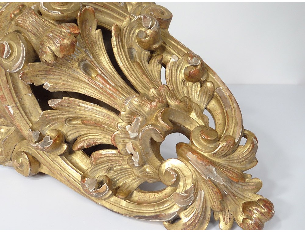 Very nice console wall light golden wood carved, decorated with acanthus leaf, XIXth century.