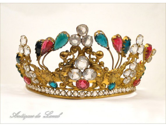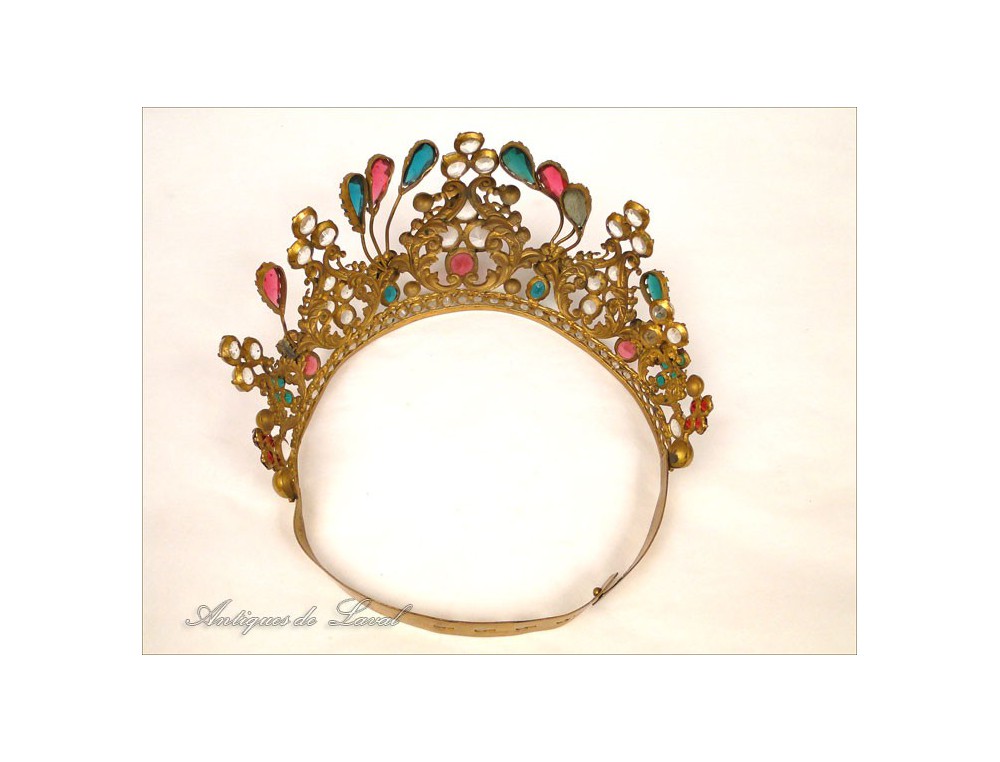 Crown or tiara or Virgin Statue Gold plated brass adorned with rhinestones, XIX
